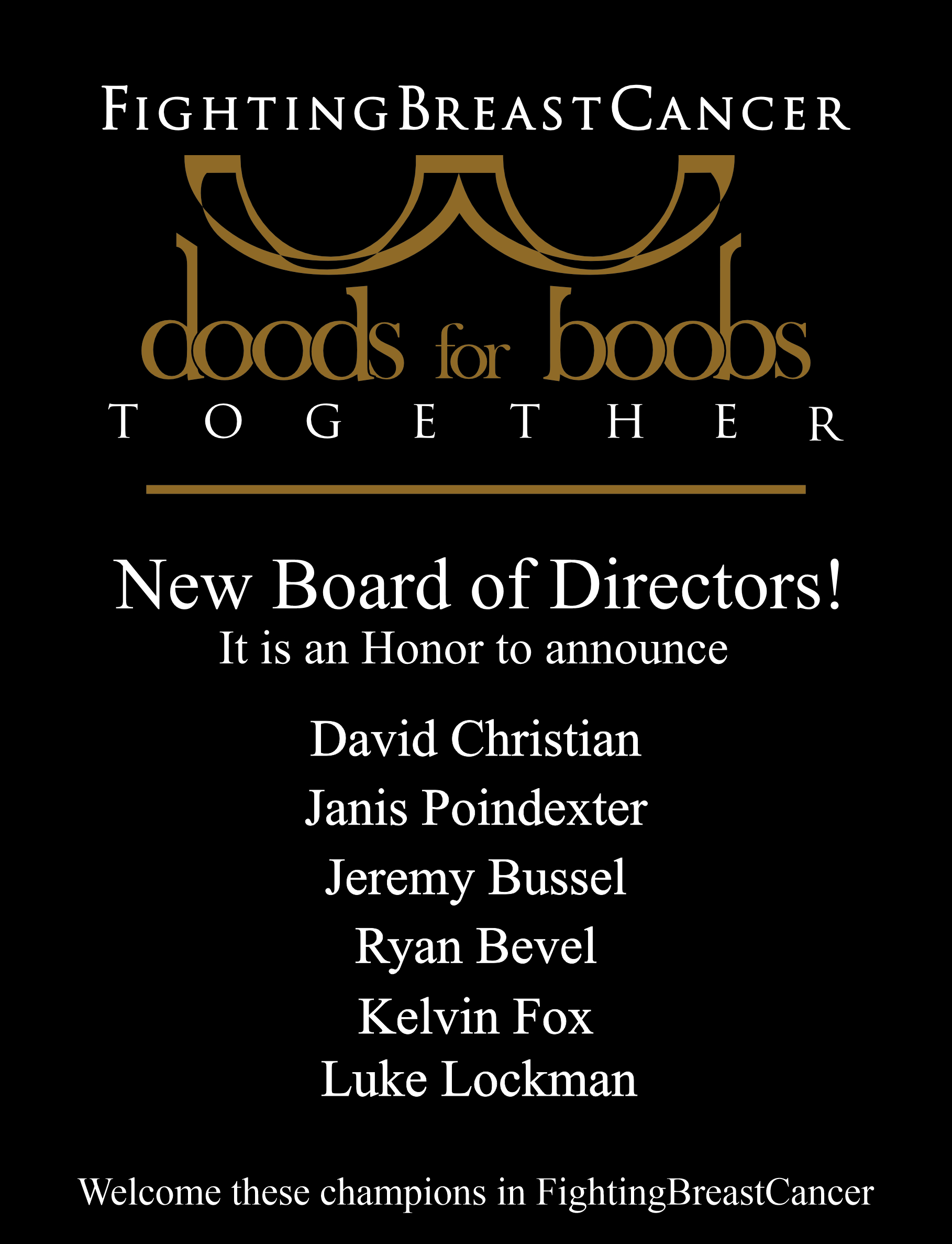 Our goal for doods for boobs is transparency to our contributors so that you can feel confident that their donations are being used to help with the emotional stress of breast cancer through this life-changing event. Donations also will be given to other foundations supporting housing in times of need.